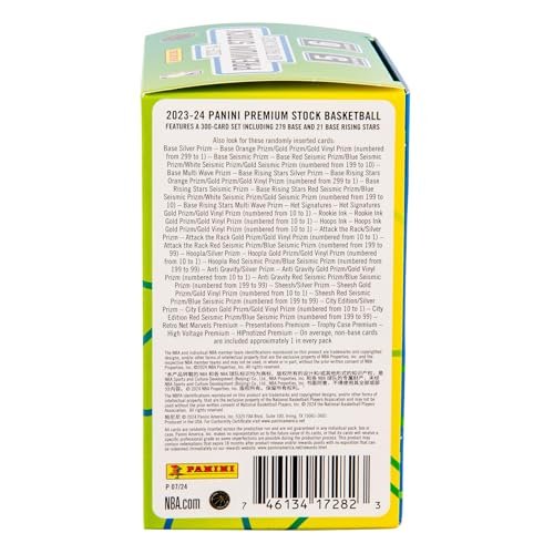 Details: The 2023-24 Panini Premium Stock Basketball Blaster Box contains 30 total cards, Find 5 Prizms including Blaster Exclusive Seismic Prizms! Look for Autographs from some of the game’s hottest young players! Also Look for Ultra-Rare inserts including Retro Net Marvels Premium, High Voltage Premium and more!