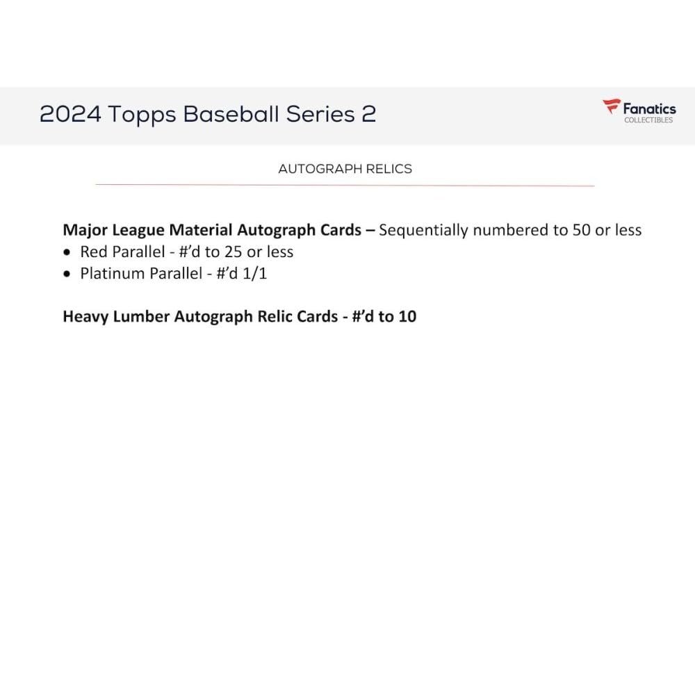 Details: This is a BRAND NEW 2024 Topps Series Two MLB Baseball Factory Sealed RETAIL 20 Pack Box with 20 Packs of 14 Cards for a total of 280 cards per box! Continue the flagship chase with 2024 Topps Baseball Series 2! Collectors will find the league’s current stars, greats from the past, and rising rookies featured on base cards, inserts, and autograph and relic cards. Look for Rookie Cards of Jackson Holliday, Yoshinobu Yamamoto, Shota Imanaga, Steven Cruz, Bryce Jarvis, Carson Spiers, Brenan Hanifee, Hunter Goodman, Joe Boyle, Everson Pereira, Jordyn Adams, Darius Vines, Jackson Wolf, Kyle Hurt, Allan Winans, Austin Wells, Wilyer Abreu and many more! Featuring over a dozen Parallels, including Vintage Stock, Independence Day, Mother’s Day, Father’s Day, Photo Variation, 1/1 Platinum and RETAIL EXCLUSIVE Royal Blue! Look for NEW Inserts in 2024, including Superstar Blueprint, Grand Gamers, and 2023 Greatest Hits just to name a few!